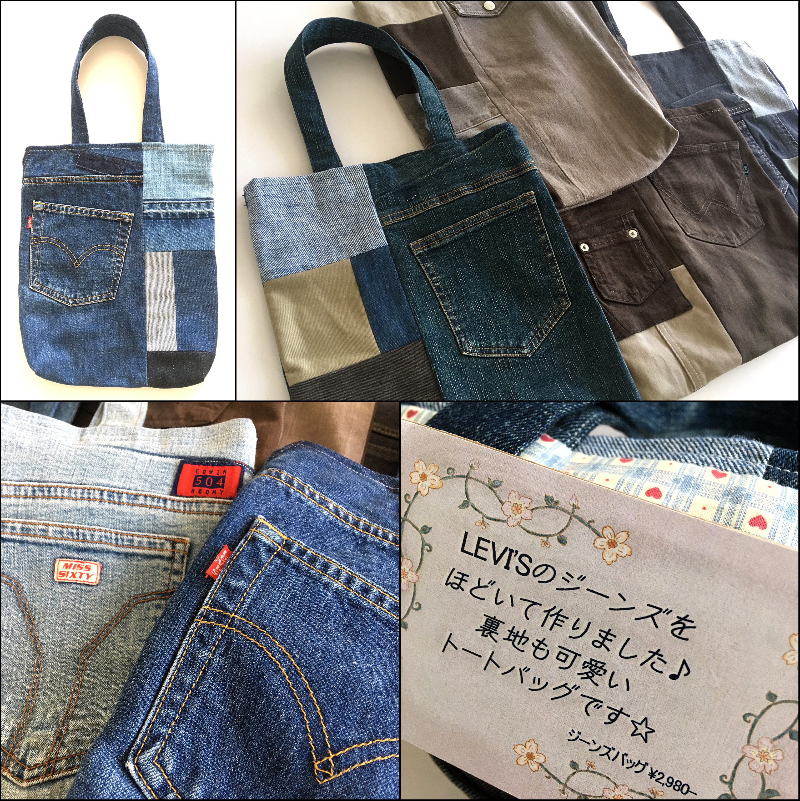不要になったジーンズの糸を時間を掛けて地道にほどき個性的なバッグを作りました。様々なメーカーや色、裏地の有無や柄など…二つと同じものはありませんので、ぜひ貴方だけのお気に入りを見つけてください♪