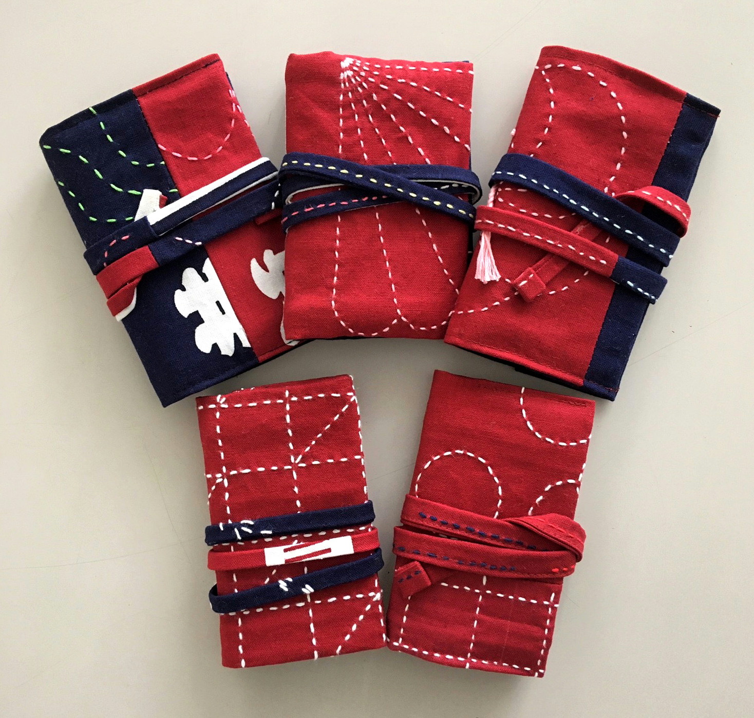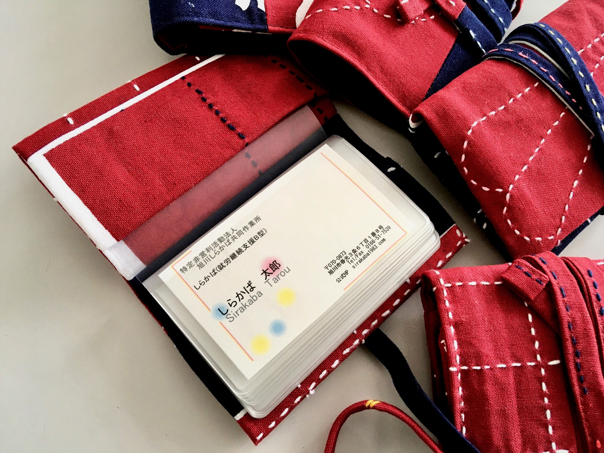 よさこい生地に刺し子を施しました。名刺やカード入れとしてご使用頂けます。